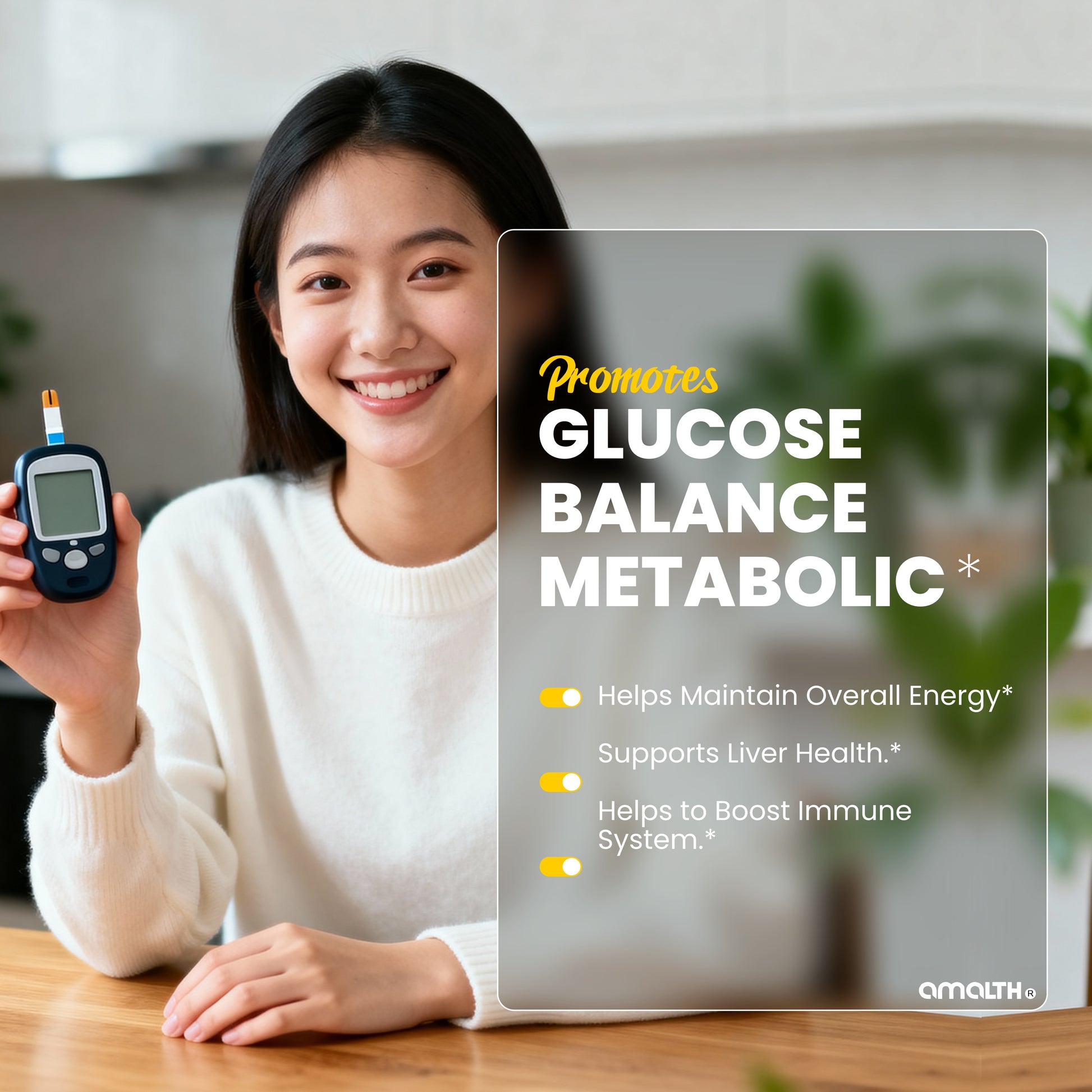 Support your blood sugar balance, metabolic health, and energy levels naturally with AMALTH® Berberine HCL 97% — a powerful 1605mg blend formulated with clinically researched botanicals and vitamins.