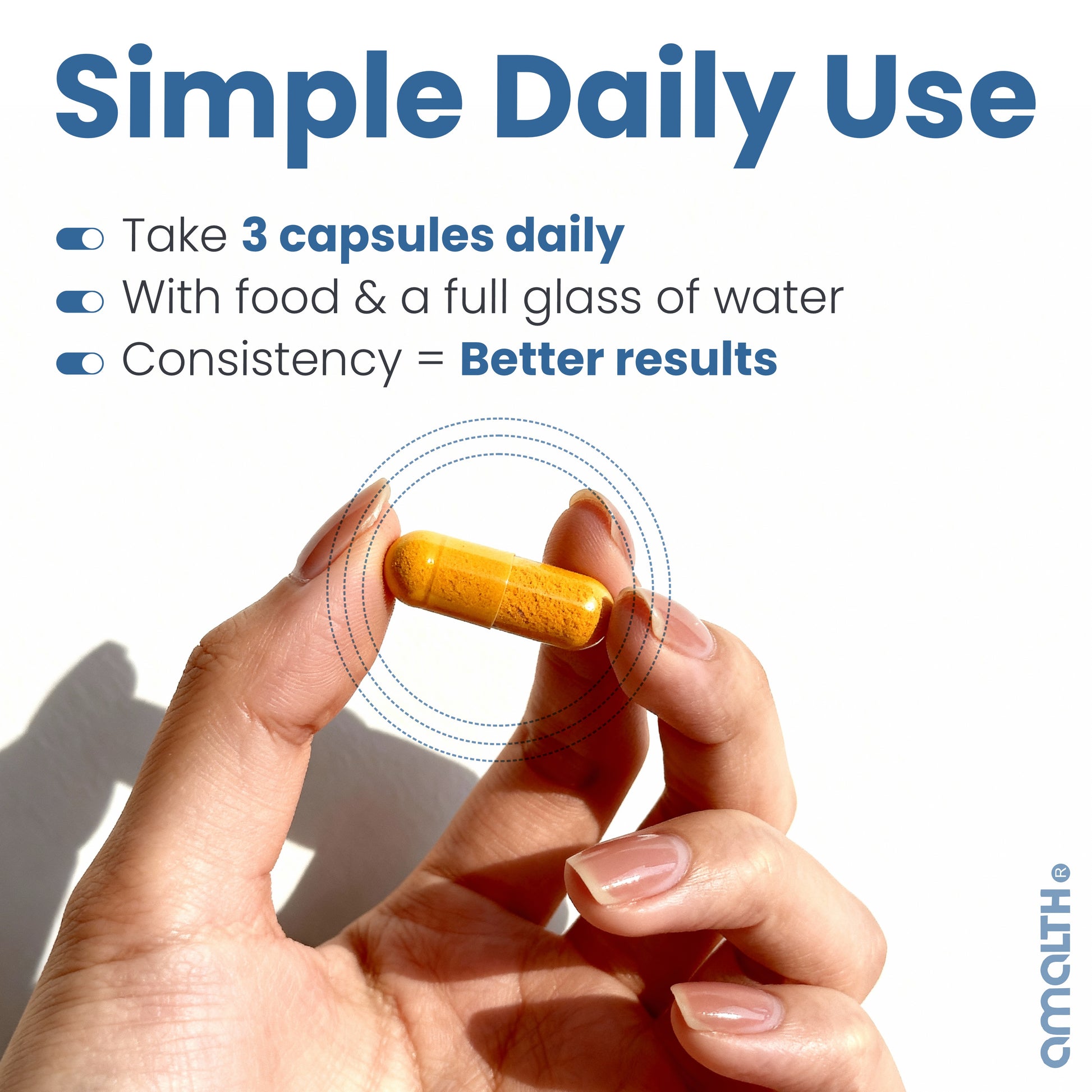 Each serving of AMALTH® Curcumin 95% Curcuminoids+ delivers 1810mg of synergistic plant-based actives that support joint mobility, muscle recovery, immune strength, and antioxidant protection — all in a clean, vegan-friendly capsule.