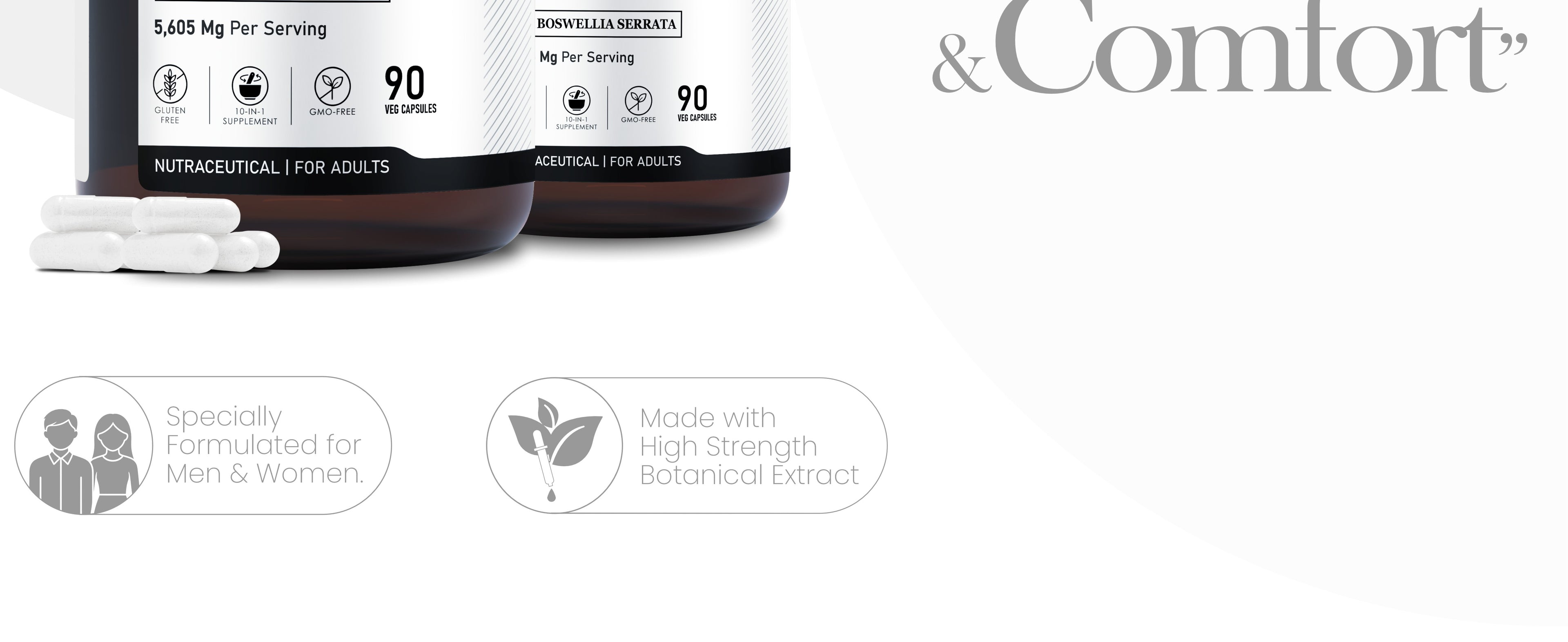MSM reduces inflammation and pain, while Boswellia Serrata supports natural anti-inflammatory response and joint comfort.
