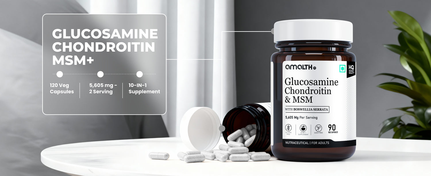 Experience complete joint care with AMALTH® Glucosamine Chondroitin & MSM, a high-strength 5605mg formulation that combines science-backed ingredients to support joint comfort, flexibility, and bone strength.